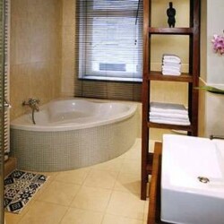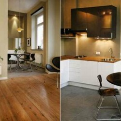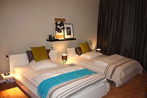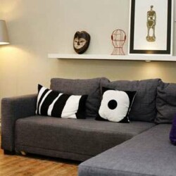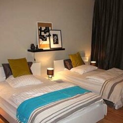 This stylish 1 bedroom apartment has a warm and cozy atmosphere with its lovely decor with attention to detail. Besides the stylish living space you will find a bedroom sharing two large, separate double beds within one bedroom. The bathroom is equipped with high quality fittings and tiling. Highlights include the square wash basin, walk-in rain shower and a large triangular bath tub for great wellness. This apartment is ideal for urban singles or couples. Fresh bed linen and towels are provided, and there is free Wi-Fi. Weekly or monthly cleaning can be booked on request.