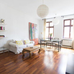 The cozy 2 room apartment in located in the second floor of a modern building with lift and is ideal for a couple. Next to the bedroom with the comfortable queen size bed there is a fully equipped kitchen and an extra bathroom with bathtub. Electronic devices like wifi connection, flatscreen TV, dish washer and washing machine make you feel at home in Berlin immediately.