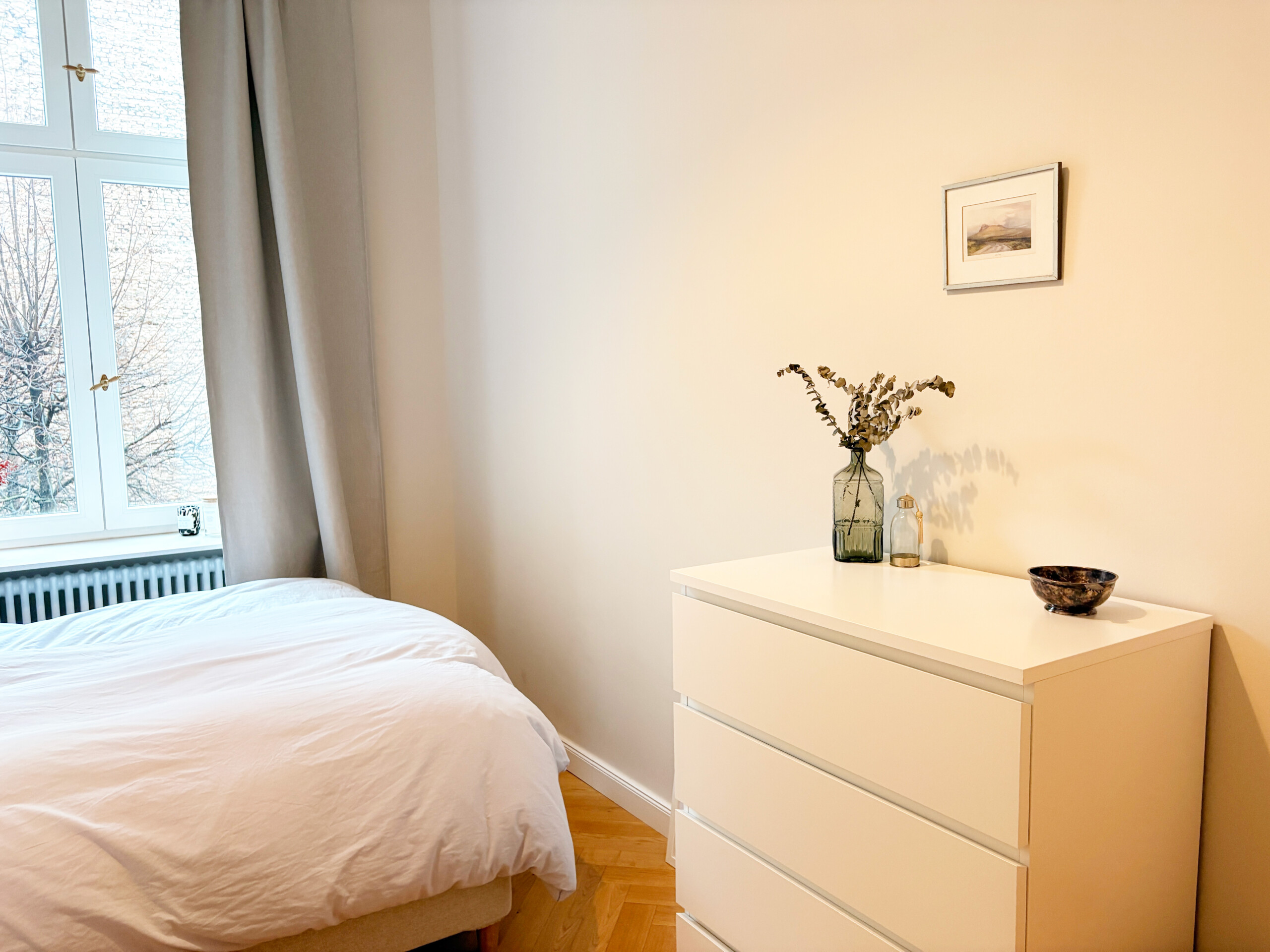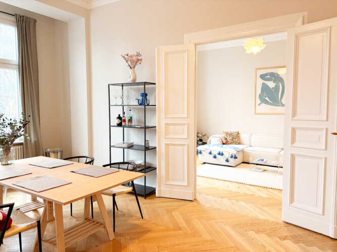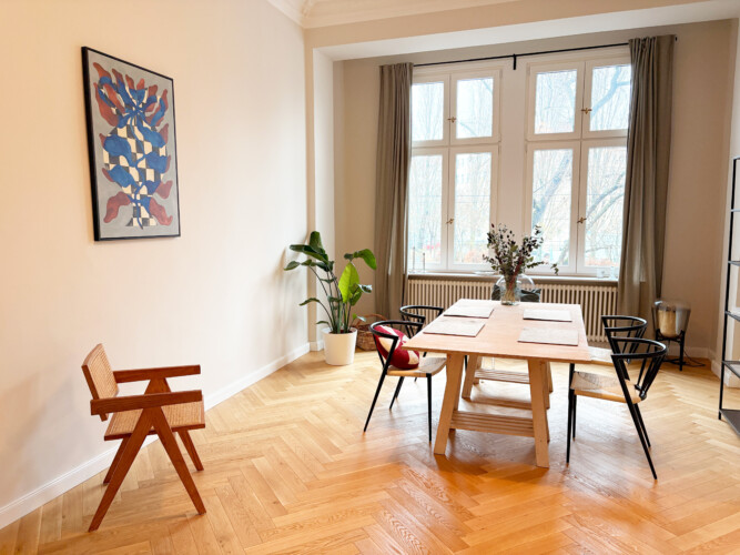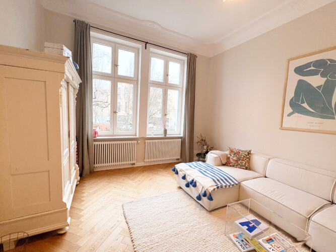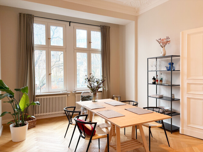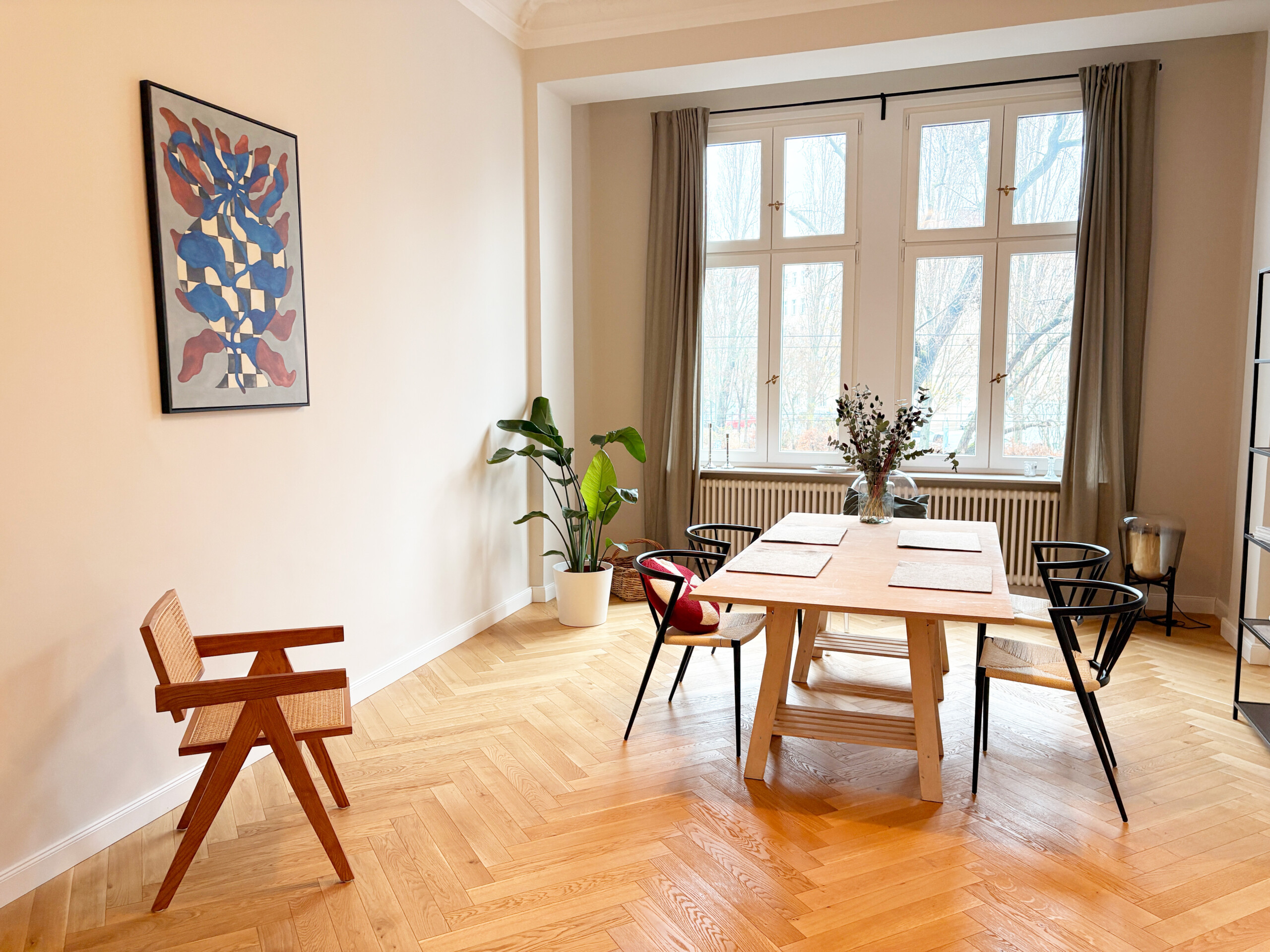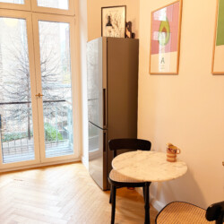 The apartment is perfectly situated in Berlin’s vibrant Mitte district, just a short walk from U Rosenthaler Platz (U8) and Nordbahnhof offering quick access to the city’s main areas. The neighbourhood is full of life, with charming cafés, trendy restaurants, and cozy neighborhood bars nearby. You’ll also find cultural spots, boutiques and green spaces within easy reach, making it a convenient and exciting place to live.