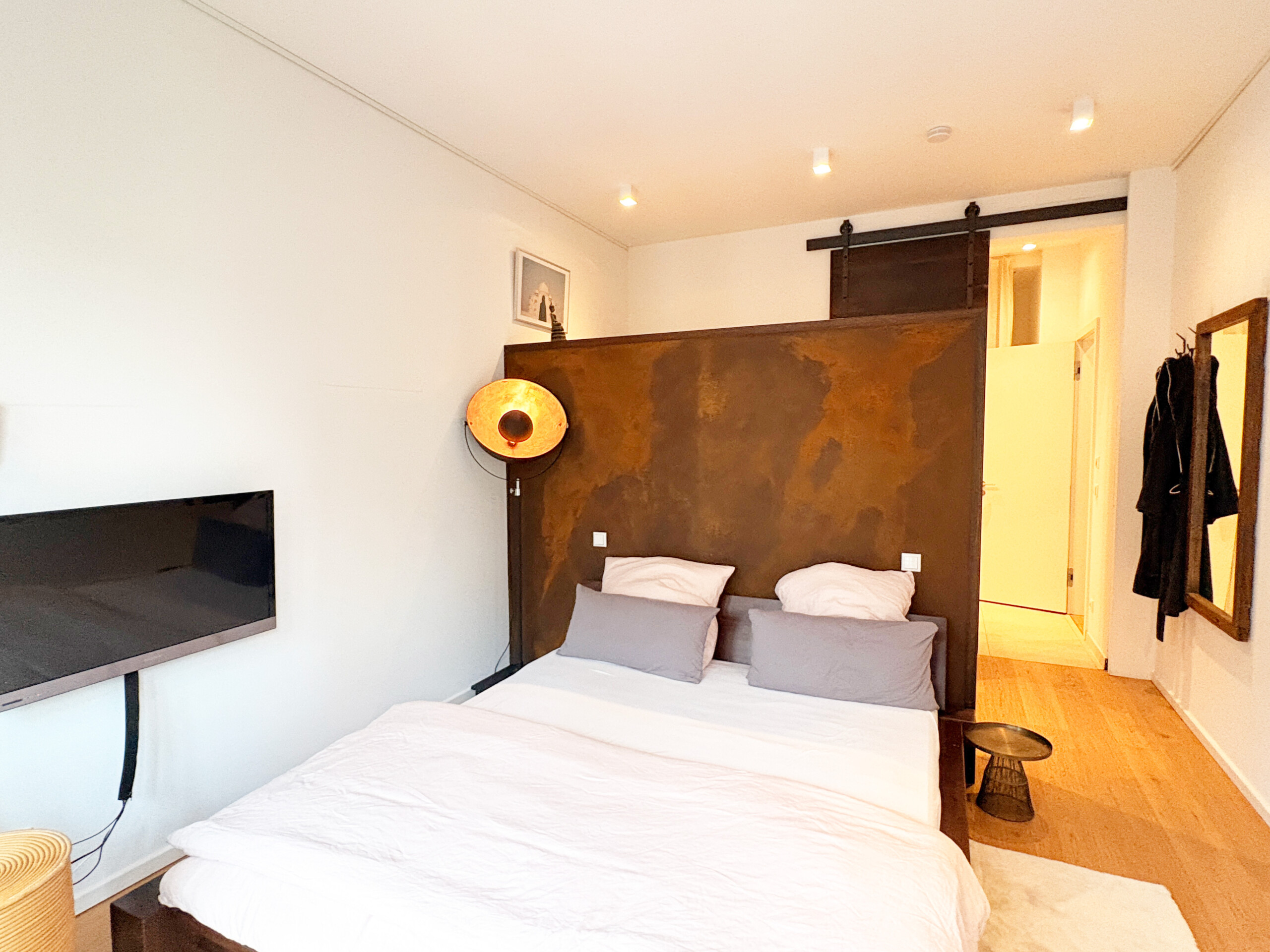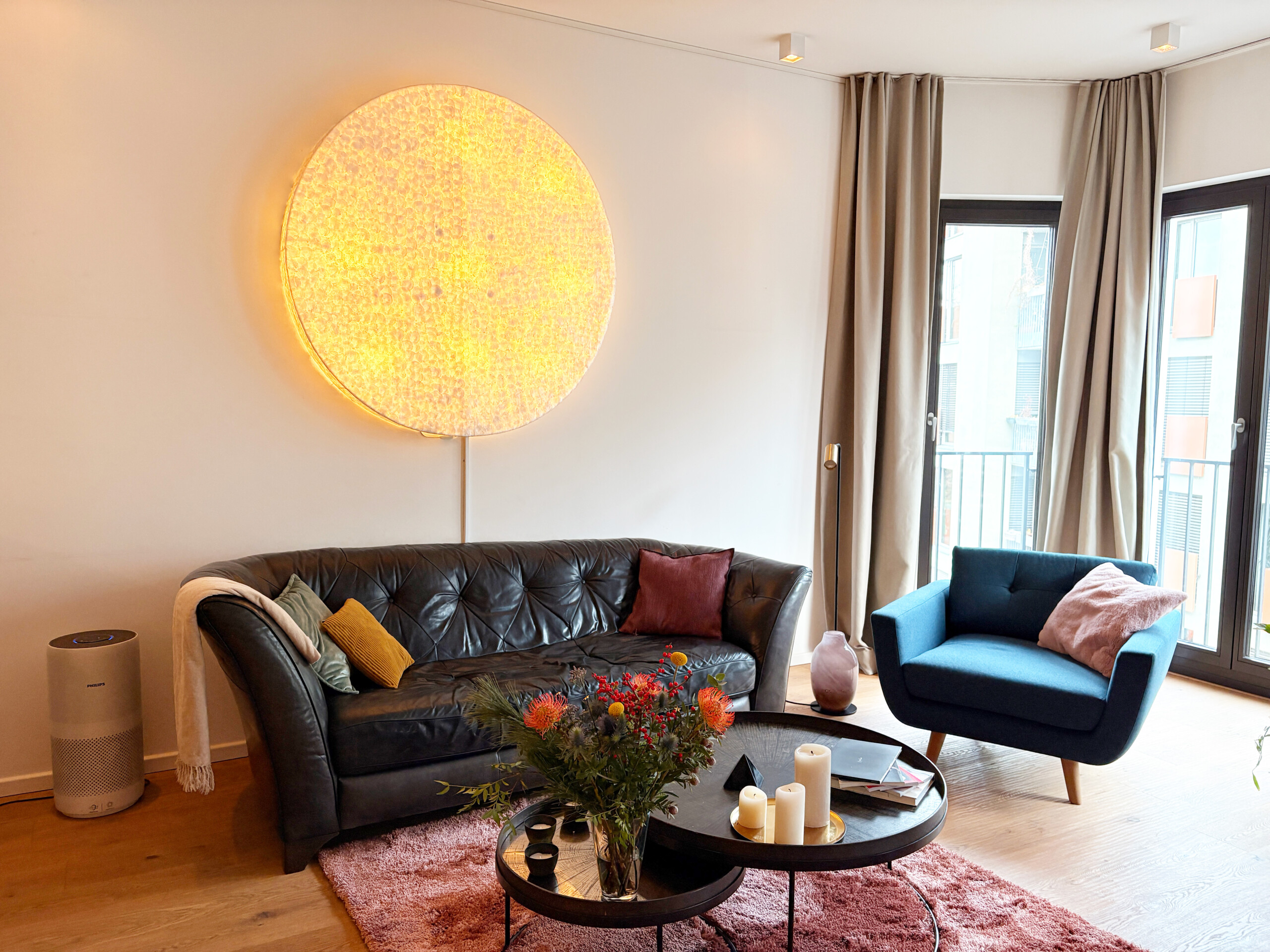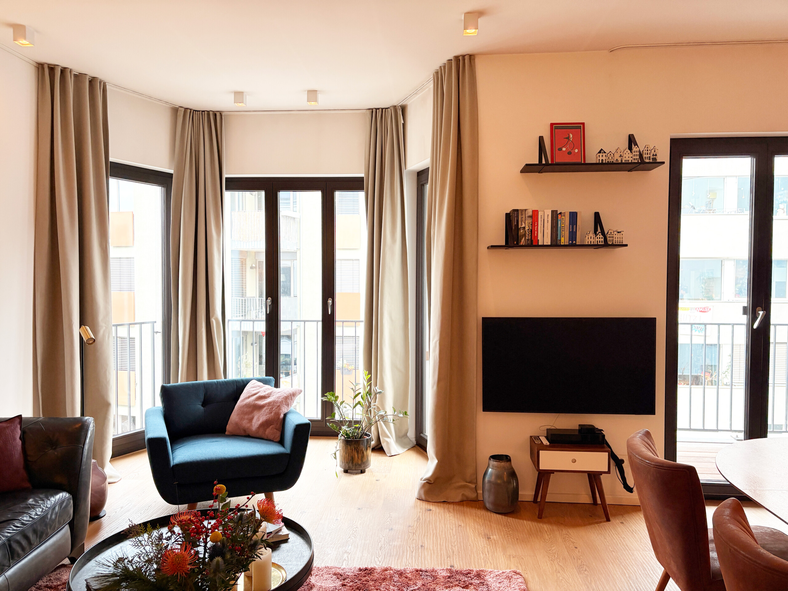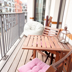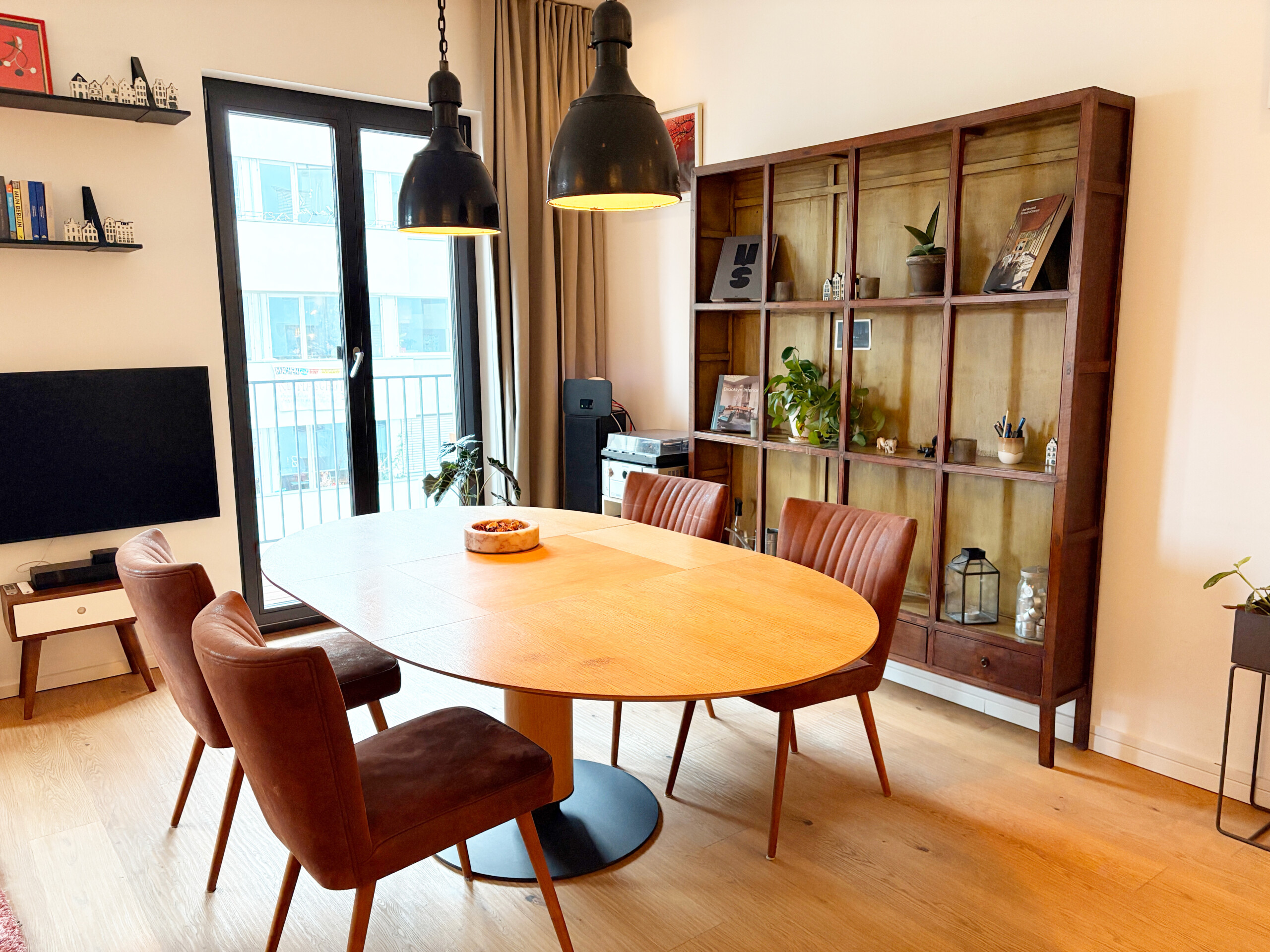 Situated on a quiet street in the heart of Friedrichshain, the apartment combines peaceful living with excellent city access. Boxhagener Platz with its weekly markets, cafés, bars, boutiques, and a wide range of restaurants, is just a short walk away, as well as green spaces such as Treptower Park. Ostkreuz S- and U-Bahn station, one of Berlin’s main transport hubs, is only five minutes on foot, offering fast connections across the city and beyond.